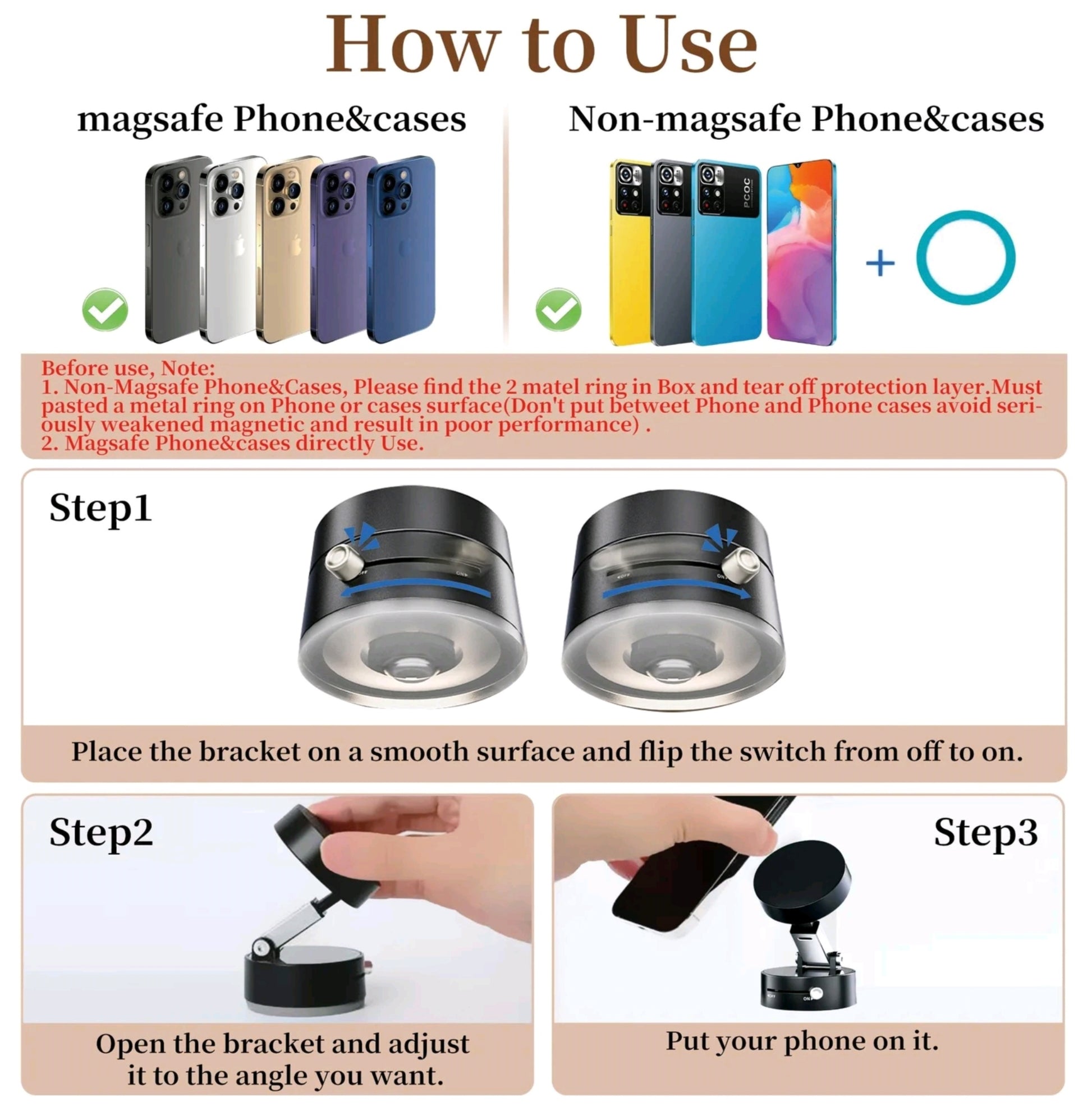 Vakuum Magnetischer Handyhalter, Faltbarer & Tragbarer Handyständer, Vielseitiger Handyhalter für Auto, Zuhause, Büro